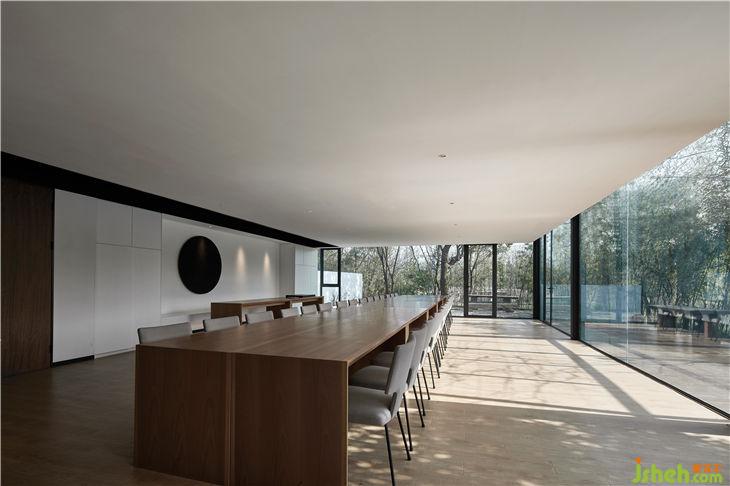 餐廳設計概念是把一個“玻璃盒”置入竹林風景中,自然與空間結合地淋漓盡致。體現(xiàn)出了傳統(tǒng)與現(xiàn)代共生,人建筑與自然共生的理念。