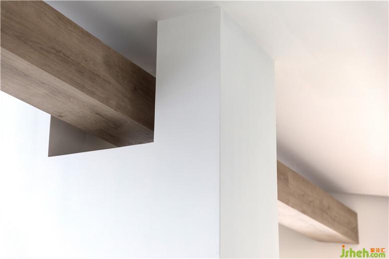 頂部的四邊形吊頂為空間增加層次感,以一根木梁貫穿其中,將墻體打通,連接了休息區(qū)與辦公區(qū)。