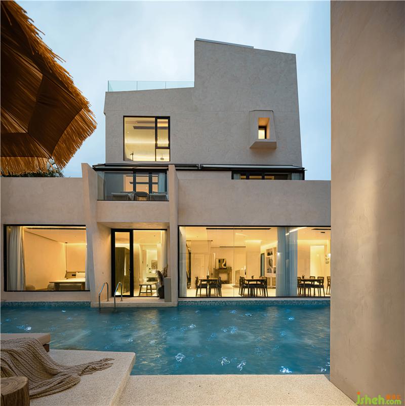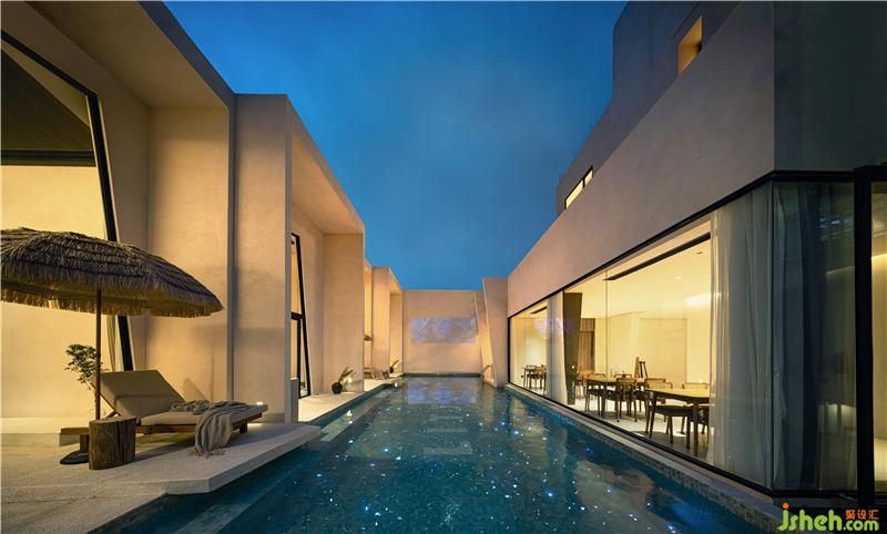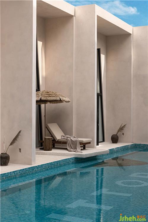 The designer hopes that guests can jump directly into the water from the room and interact with the sea at all times. Therefore, a starry sky swimming pool was built between the two guest rooms, echoing the concept of "the sky and the sea".