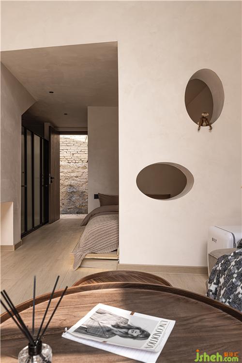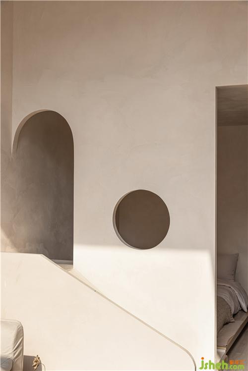 親子房中的結(jié)構(gòu)形態(tài)各異,充滿著趣味性,配上滑梯與鏤空墻,整個空間仿佛是一個游玩的天地。同時考慮到實用與美觀性,圓形的弧度能夠最大地保障孩子在玩樂時的安全問題。