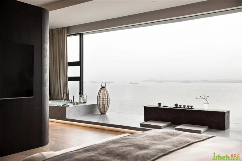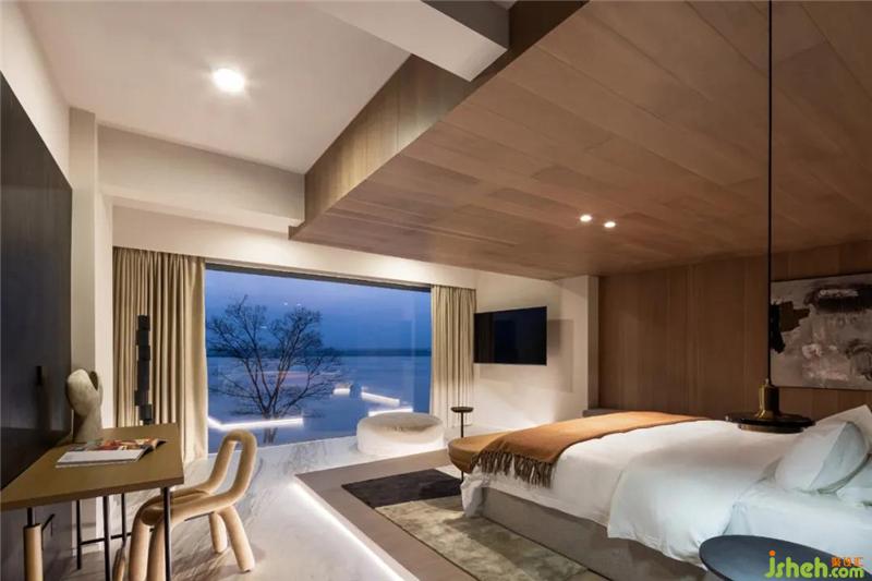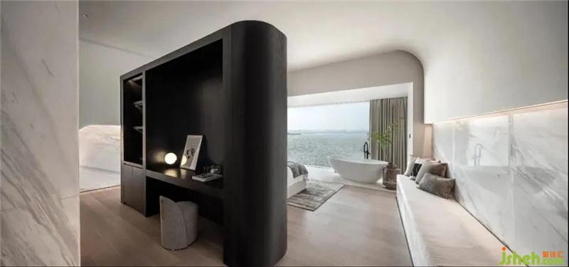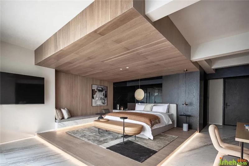 黑色盒子造型墻提取出集裝箱的概念,與原木色裝飾面做對比,在純凈的色彩之間,杭州酒店設(shè)計(jì)暖色的燈光與家具賦予空間以溫暖與自在。