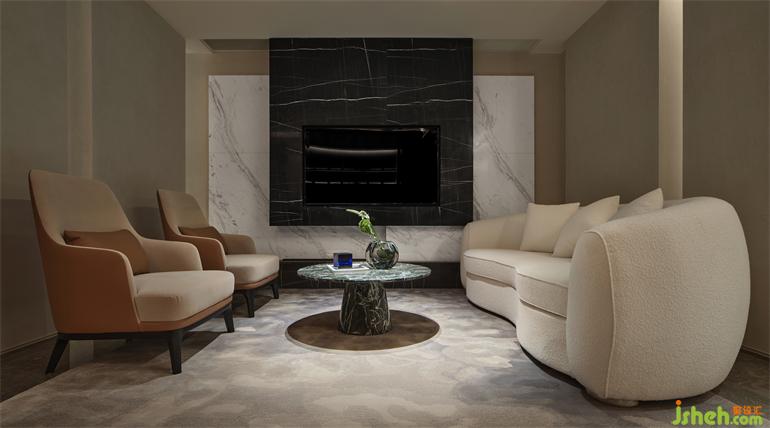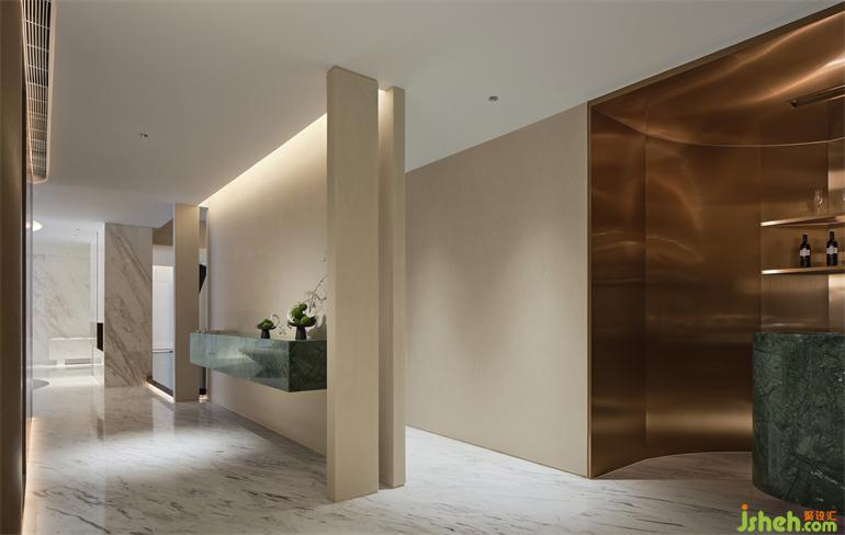 The embedded long light strip leads the moving line of visitors, like a flash of light shining into a cabin, with a strong sense of ceremony. Furthermore, the solid partition wall makes clients more independent in communication and not disturbed by the external environment.