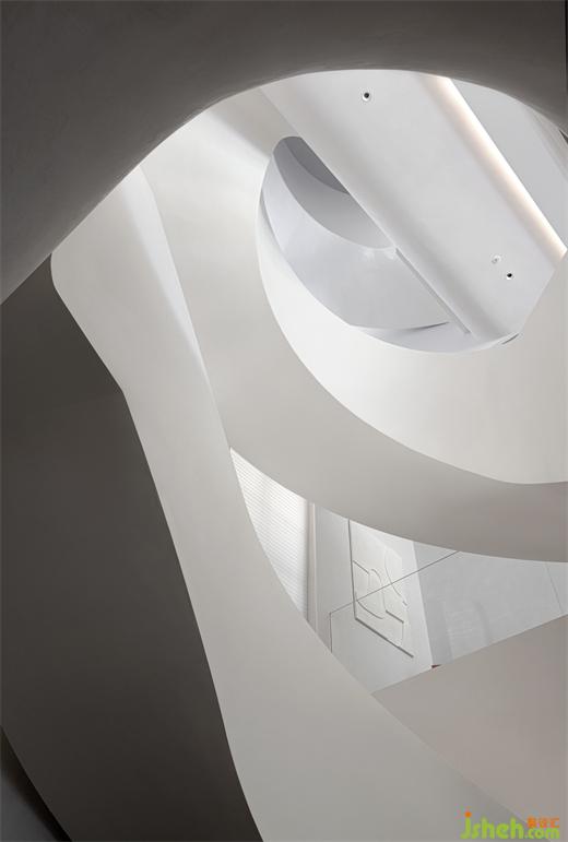 雕塑感的旋轉(zhuǎn)樓梯始終貫穿著整個住宅,如樹干般承載著空間的生長,光線進入室內(nèi),臺州別墅設(shè)計視覺感受被縱向拉長,打破沉悶的格局,因此更加自由與充滿力量感。