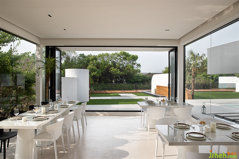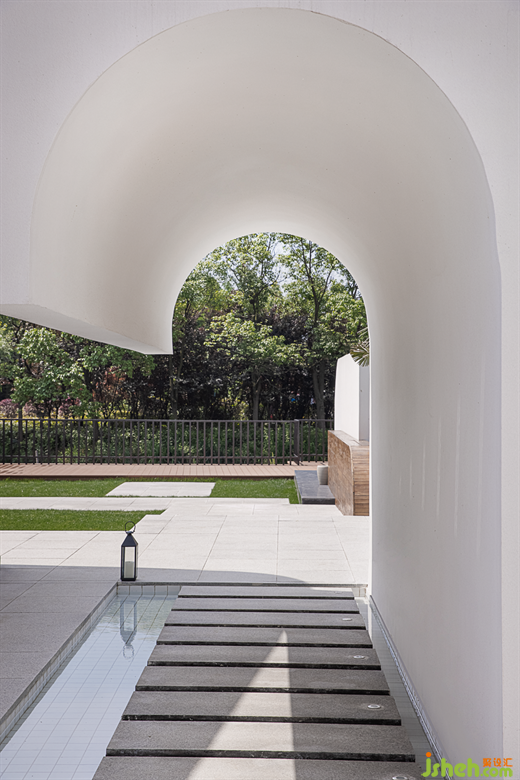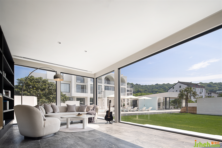 大落地玻璃在建筑中起到了連接室內(nèi)外的功能,蘇州民宿設(shè)計(jì)讓室外景色映入空間,空間與自然進(jìn)一步融合。