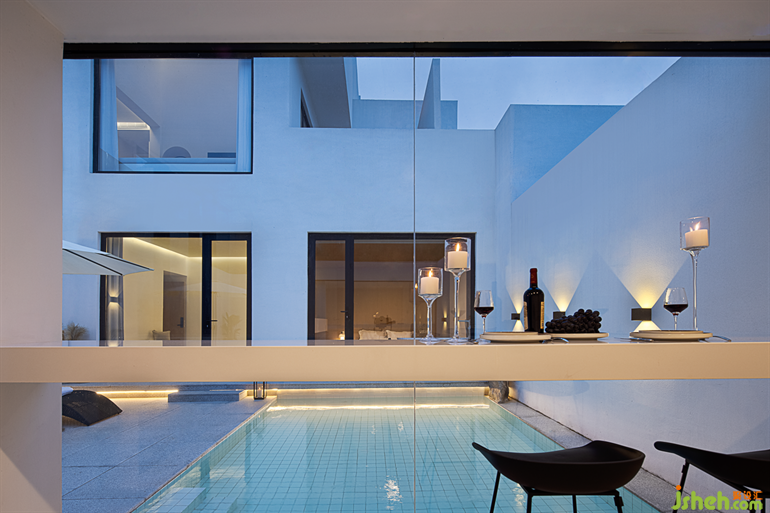 蘇州民宿設(shè)計師在功能性上加入了許多考量,以現(xiàn)代化的生活視角,增設(shè)酒吧、泡池、廚房等空間,進一步融入美好的度假體驗。