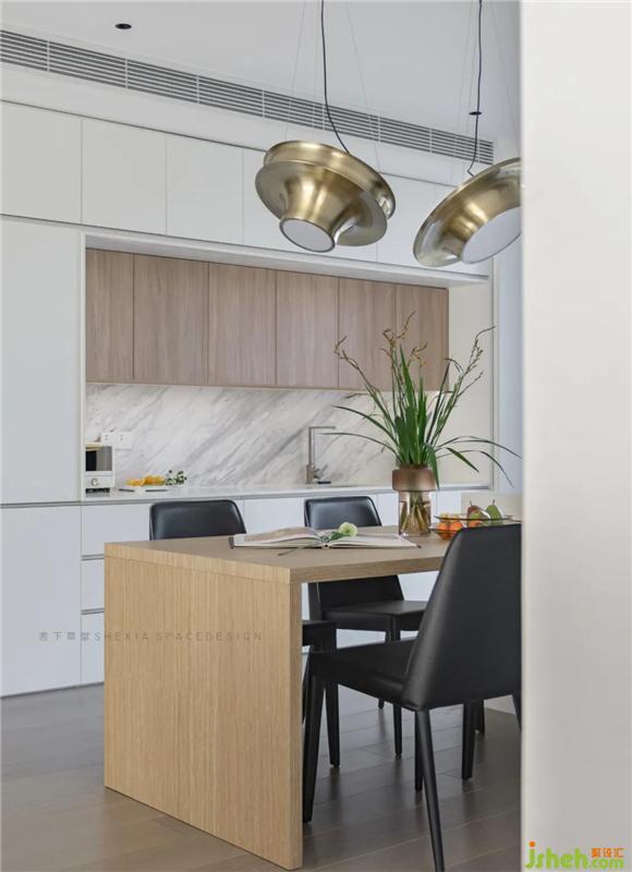 金屬的光暈,石材的細微變化,一同喚起居住者的感官體驗。不同層次的灰色相互搭配,營造出開敞低調(diào)舒適的氛圍,表面上看不到多余的物品,實則都藏在設(shè)計之中。