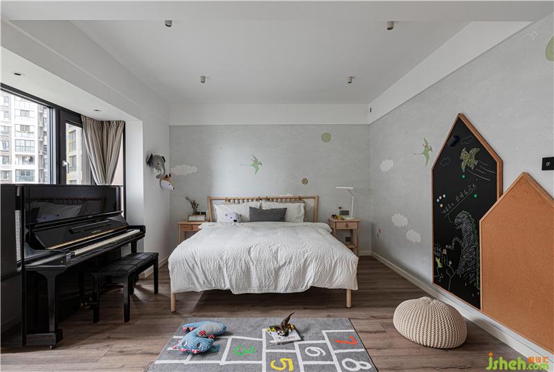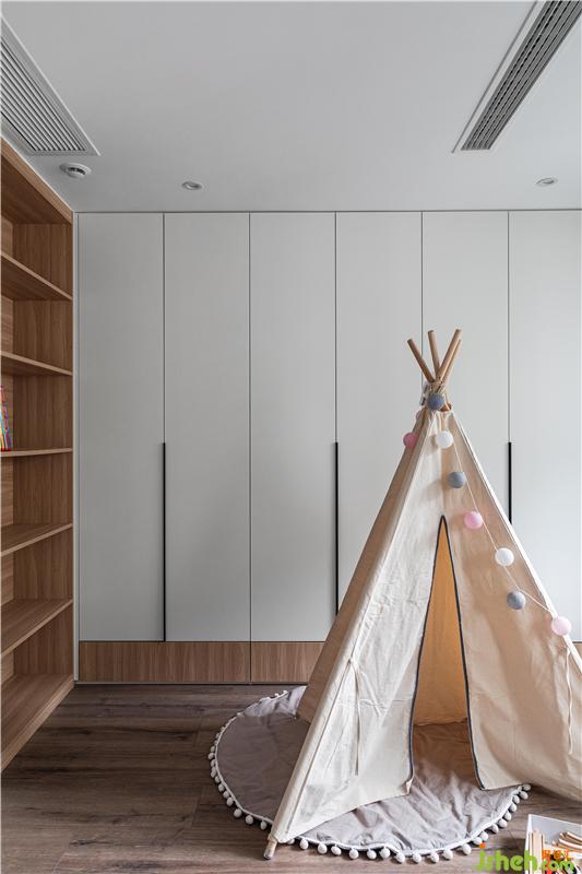 將兩個次臥打通后變成了現(xiàn)在的兒童房,最大程度的提升空間舒適性。既是睡眠區(qū),也是業(yè)主孩子布丁哥哥的游樂區(qū)及學習區(qū),一個房間包含了多種可能。由于布丁哥哥還小,所以更多的是大面積空間留白,讓孩子有足夠?qū)挸ǖ耐嫠^(qū)。游樂區(qū)旁設計了整面墻的柜體,方便玩具的收納。也沒有忘記空間與兒童的成長關(guān)系,窗邊也為長大后的他,預留了書桌與鋼琴的擺放位置。
