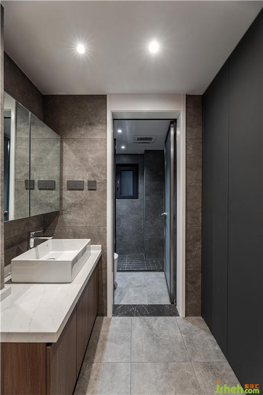 主衛(wèi)以功能為主,設(shè)計懸浮的浴室柜避免受潮。有了鏡柜,洗漱臺面也能時刻保持簡潔干凈,還有超好用的電熱毛巾架及干濕分離的淋浴間。該區(qū)域頂面與瓷磚的銜接也下了不少功夫,正常貼完磚后距離頂面可能會留下2-3mm縫隙,而我們完成后的縫隙卻非常的均勻精致。