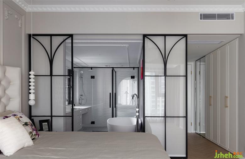 完備的功能布局,讓屋主兩人的起居變得十分便捷:早上起床,洗漱、淋浴、化妝、如廁互不干擾,轉(zhuǎn)身來到開放式衣柜,對著鏡柜隨心情搭出當(dāng)天的造型,一天的好心情從清晨開始。