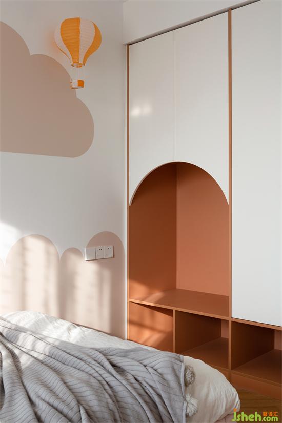 家裝設(shè)計拱形門洞和拱形衣柜交相呼應(yīng),無論是飄窗、還是裝了燈的衣柜,都成了小朋友看書、玩耍的私人領(lǐng)地。