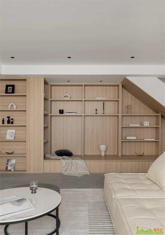 后來,在這個小小天地完成后,他們發(fā)現(xiàn)在巧妙的安排下,書架整體張弛有度,家裝設(shè)計打消了之前的憂慮。