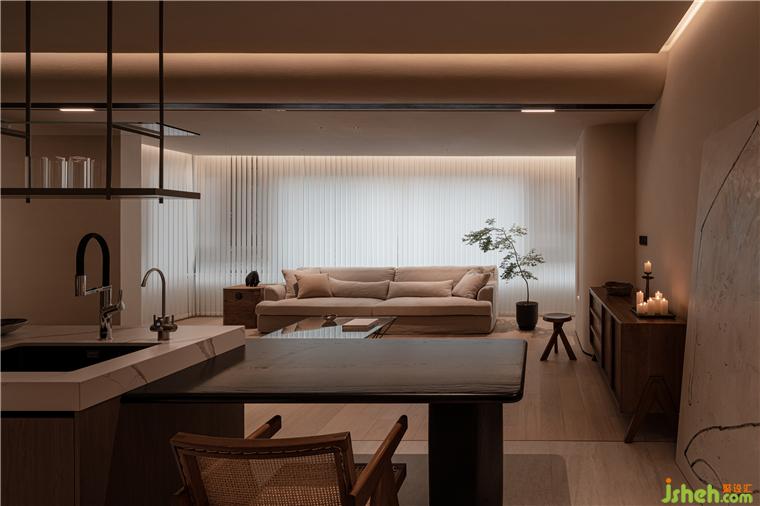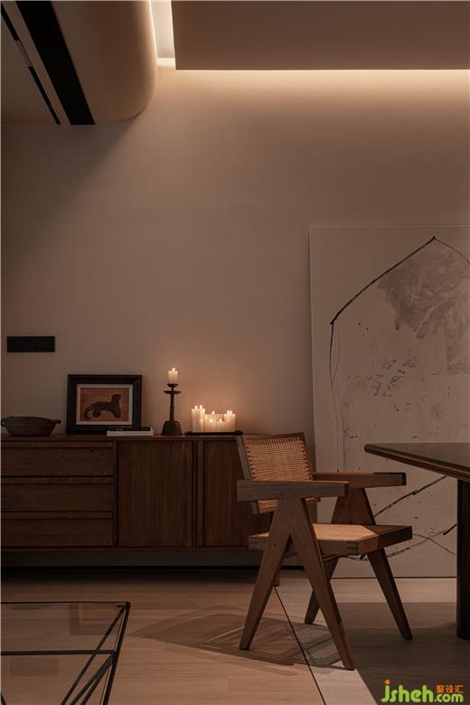 而房屋整體形式的呈現(xiàn),與這座城市的基因產(chǎn)生著緊密且微妙的關(guān)系。入戶地面采用川西壩子中常見(jiàn)的青瓦處理手法,堆疊出別致的肌理花紋,成都香悅府裝修設(shè)計(jì)延續(xù)成都建筑特有的歷史韻味。通過(guò)入戶沉降的方式將空間重組,一明一暗間,在這喧囂城市之中,營(yíng)造出了一個(gè)世外桃源般的愜意秘境。