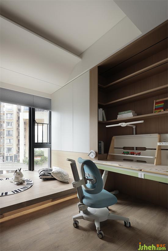 封陽臺得到舒適地臺區(qū),一體化柜體設(shè)計,深圳天健天驕裝修設(shè)計將空間與功能協(xié)調(diào)到極致,衣柜收納功能豐富,兒童專用書桌嵌入柜體結(jié)構(gòu)完美融合,小小兒童房集學(xué)習(xí)、娛樂于一身。