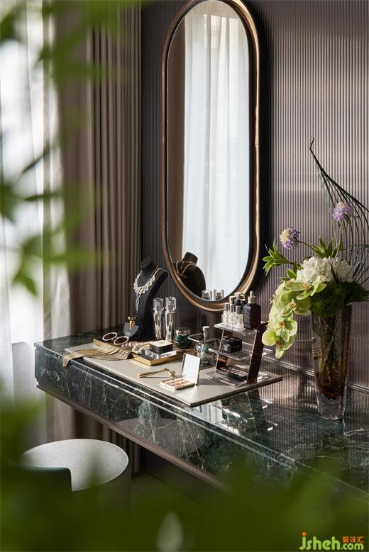 貼心的細(xì)節(jié)總是在不經(jīng)意間被關(guān)照與呵護(hù)。床底與飄窗設(shè)有溫馨、人性化的燈光系統(tǒng),超大化妝臺(tái)的定制,床頭及衣柜的一體設(shè)計(jì),處處彰顯著設(shè)計(jì)師對(duì)功能梳理的匠心思考。