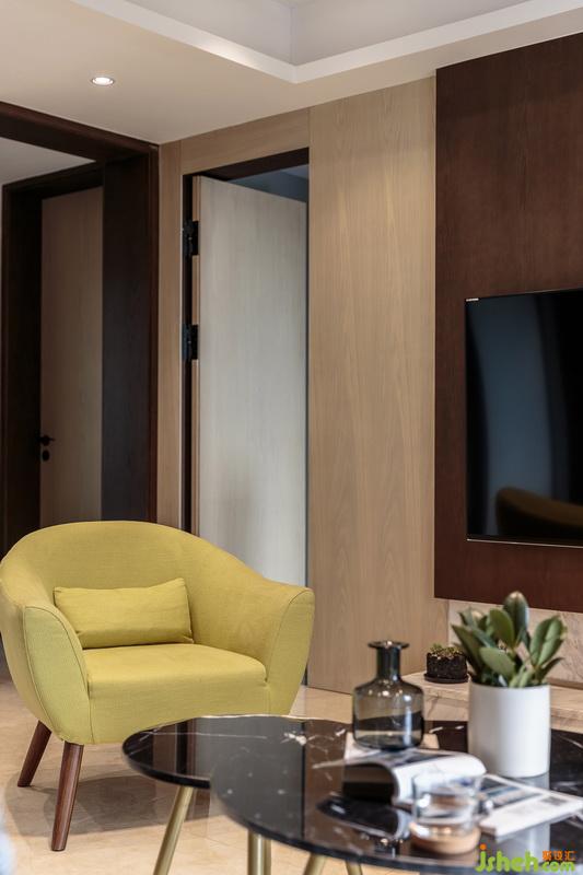 主臥的門在客廳電視墻位置,使原本就不大的電視墻更是分割得支零破碎,所以我們做了隱形門處理,讓客廳更顯得大氣。