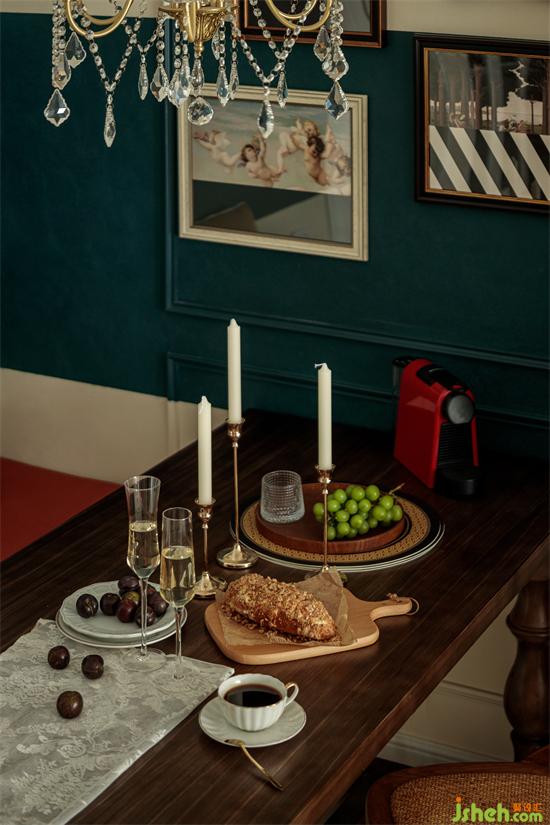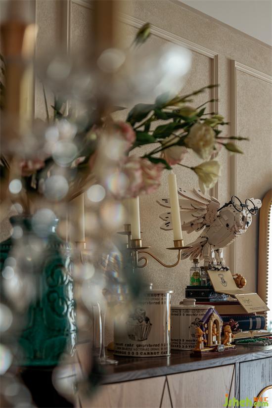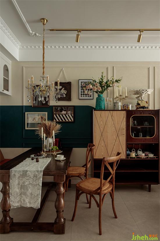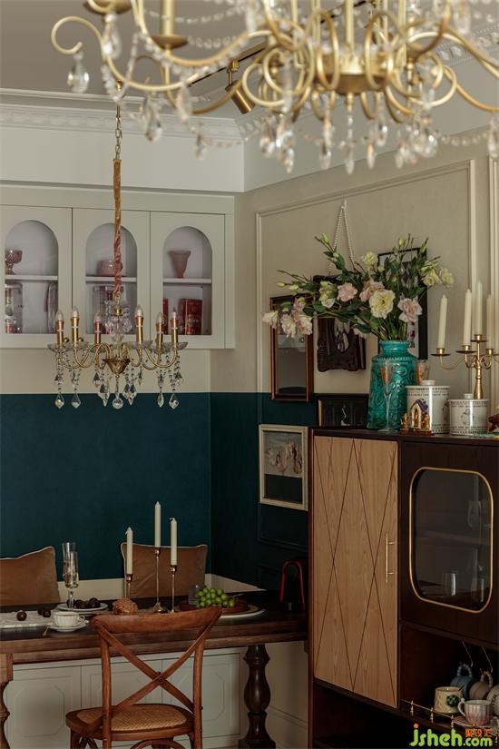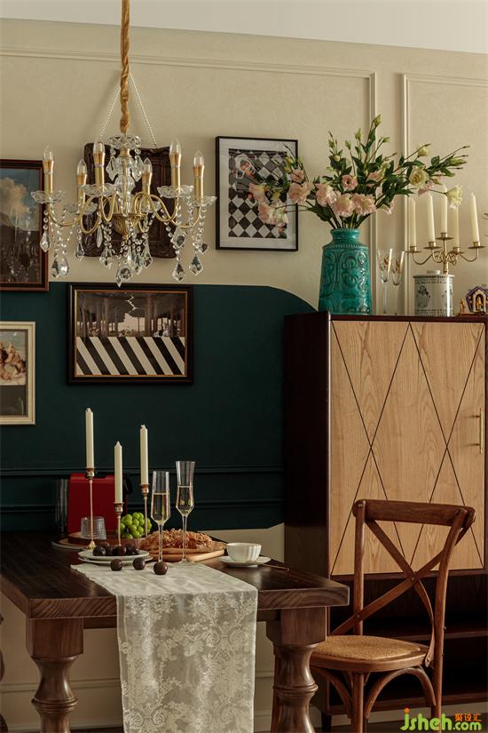 餐邊柜顏值滿滿,十畝家裝設(shè)計(jì)繁美的花飾、獨(dú)特的擺件和掛畫把餐廳變成了休閑慵懶的放松空間。