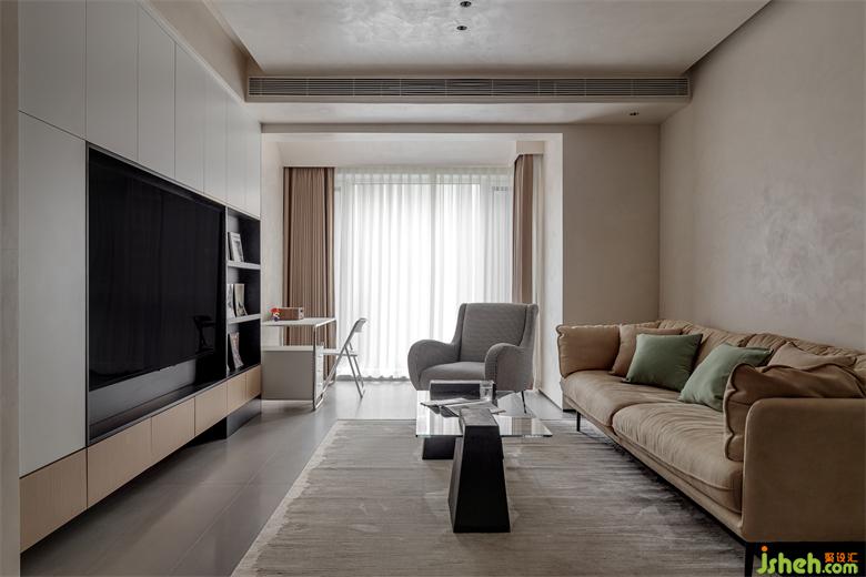 墻面用啞光色打底,在自然光的映襯下,增添了幾分舊時(shí)情懷。家裝設(shè)計(jì)窗簾、沙發(fā)、柜體的顏色源于自然,暖光咖色代表大地,間錯(cuò)有致,呈現(xiàn)出一種井然有序的樸實(shí)氛圍。