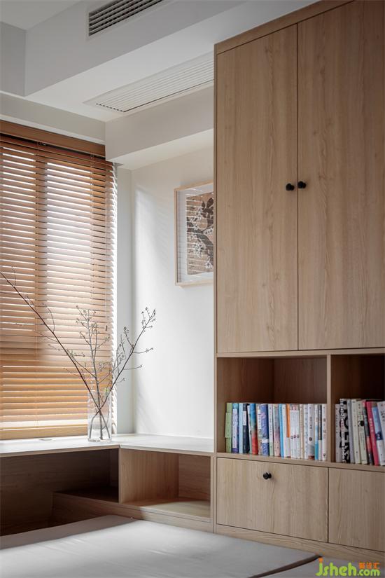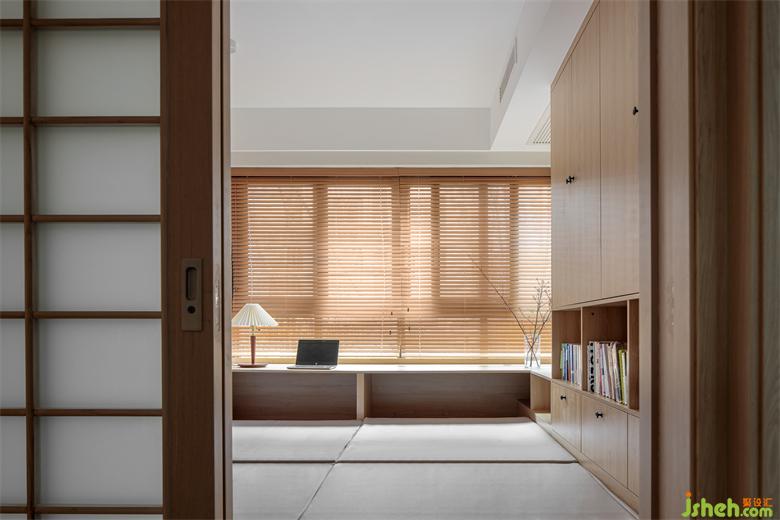 The study room is the area of work and leisure, and the tatami style sink desk gives good consideration to these two functions. With wooden shutters, the whole space is integrated, adding a trace of Zen.