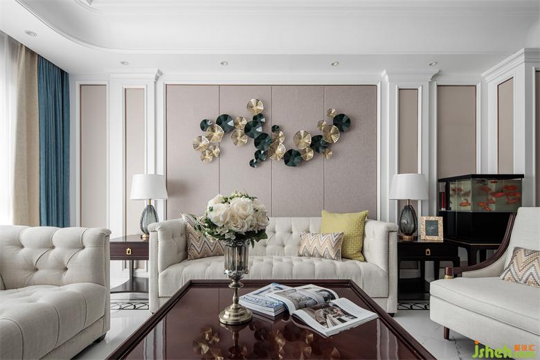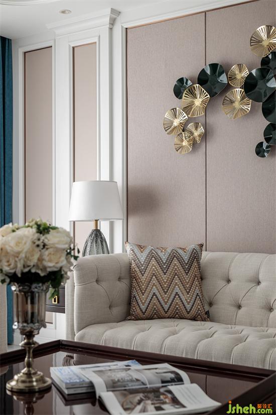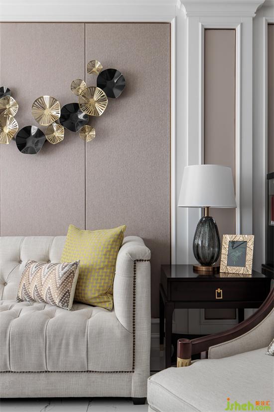 金色邊的點(diǎn)綴和背景墻的裝飾相映成趣,增添了幾分復(fù)古情懷,提升了整個(gè)空間的格調(diào)。家裝設(shè)計(jì)沙發(fā)分位擺放,布局緊湊合理,實(shí)用性更強(qiáng)。