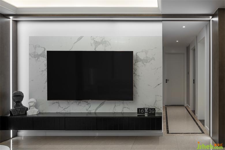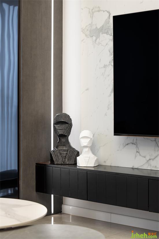 黑色定制電視柜極具質(zhì)感,懸空設(shè)計增加了視覺空間和使用空間,家裝設(shè)計整體效果干凈、簡潔、通透。