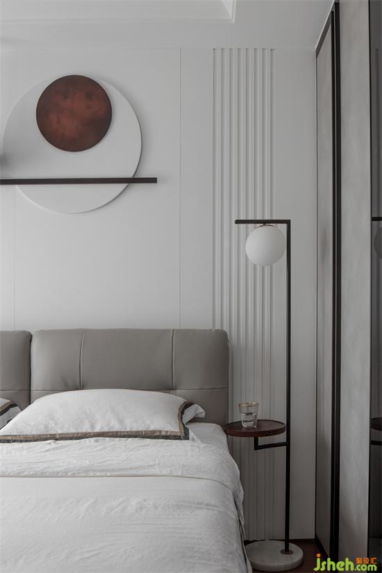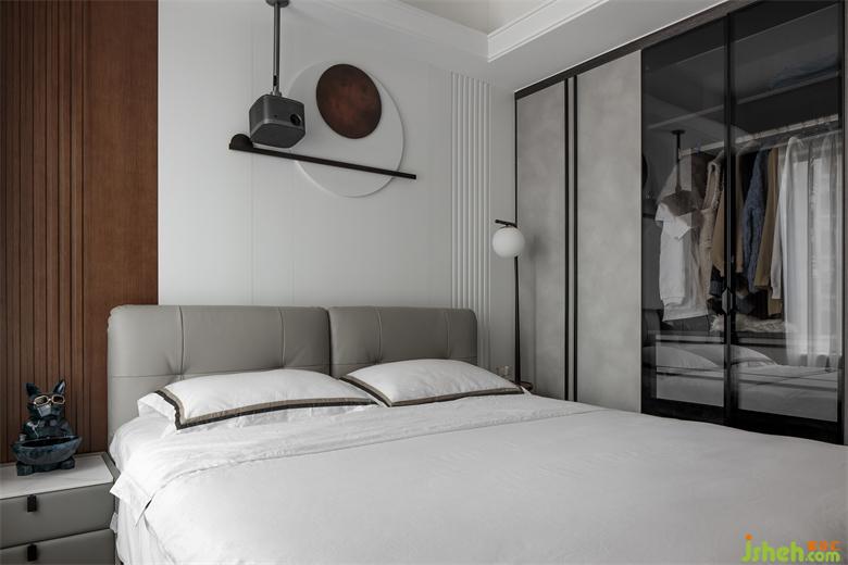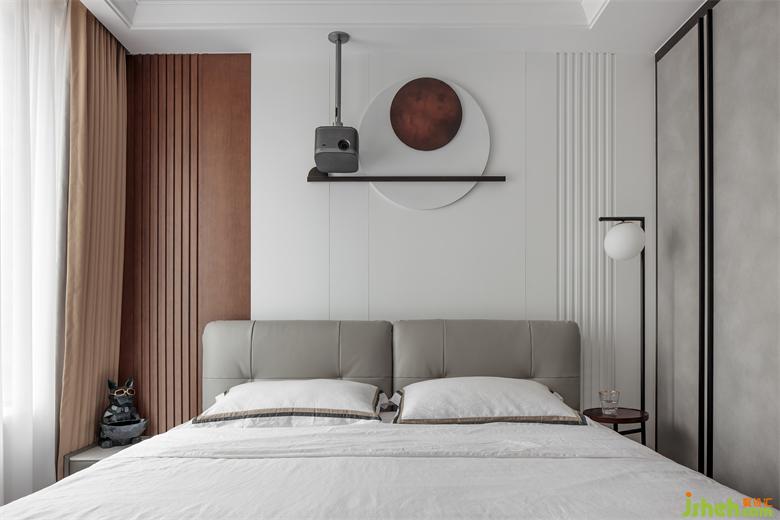 The bedroom continues the black and white gray tone, the whole house style is unified and harmonious. As the background of space, walnut embellishment.