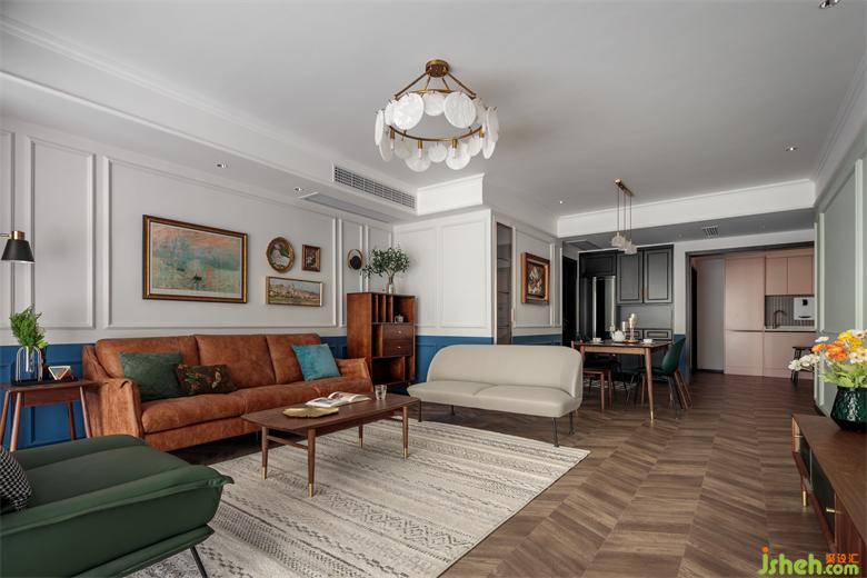 家具的搭配精巧別致,工藝風的沙發(fā)和原木的柜體產生碰撞,實木斗柜和茶幾烘托出幾分厚重感,家裝設計精致的燈具與做舊的畫框、間錯的布局,顏色上大刀闊斧,多種元素同時出現(xiàn),在質感上得以統(tǒng)一,和諧共生。