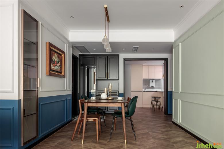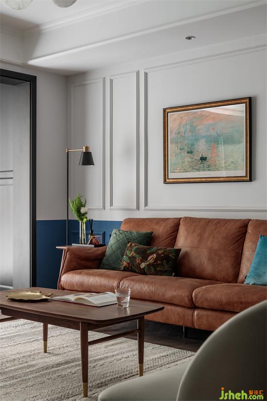 公共空間撞色的撞色處理,上墻刷灰白色,經典百搭;家裝設計下墻刷墨藍色,分色的處理使得整個空間的色彩一下提升起來,多而不亂,增加了層次感和對比度,格調滿滿。