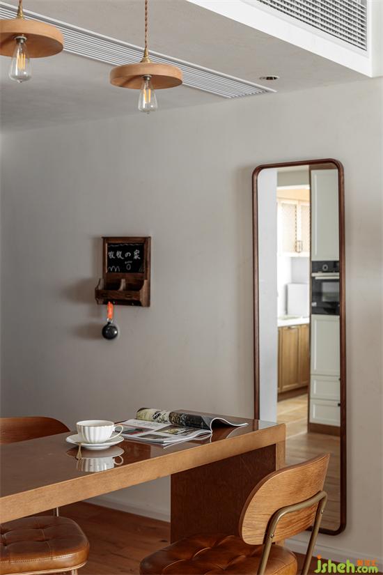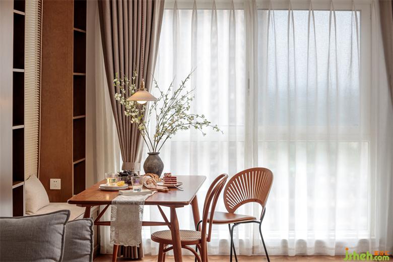 并用原有的陽臺打造了卡座、餐邊柜等功能性設(shè)施。好友到訪時,可在這里用餐、閑聊、喝咖啡,玩狼人殺。家裝設(shè)計用餐時,既可享受美食的誘惑,又能坐擁窗外的風(fēng)景,實在是妙不可言。