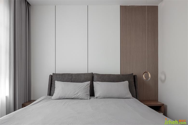 The bedside background wall also uses the color block matching principle to enrich the sense of spatial hierarchy.