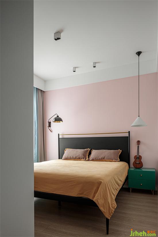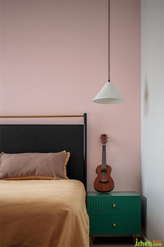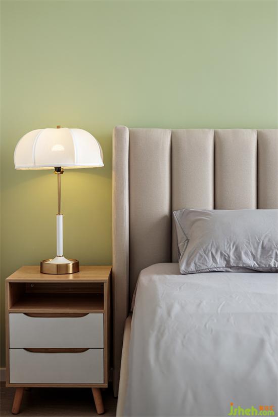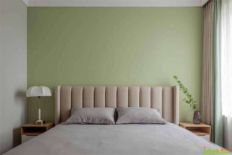 淡雅的茶綠,清凈的檀紅,疲憊感瞬間得到釋放。家裝設計隨之而來的舒緩、輕柔包裹住身體,緩緩入夢。