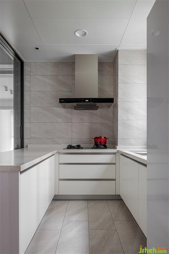 吧臺(tái)設(shè)計(jì)利用玻璃移門的開合,起到了功能區(qū)分的作用:關(guān)門時(shí)作為廚房的操作臺(tái),開門時(shí)作為和餐廳互動(dòng)的吧臺(tái),可休閑,可傳菜。