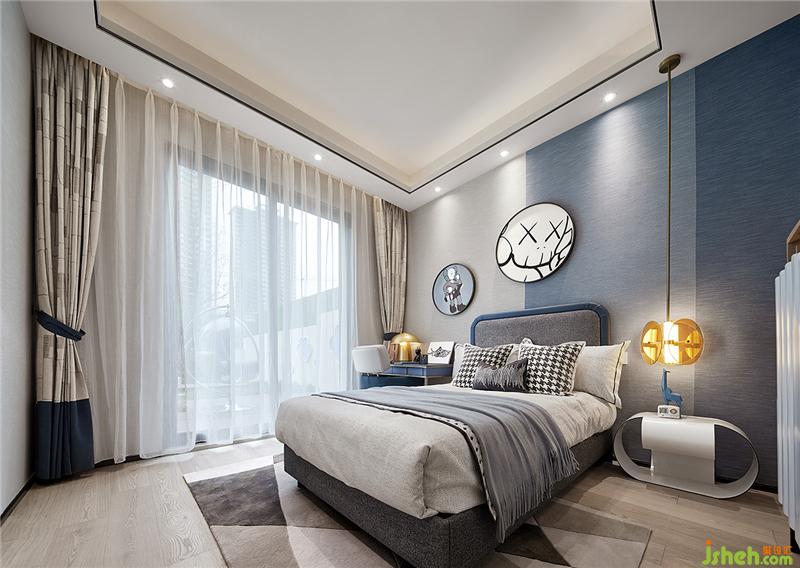 兒童房的色彩搭配以藍(lán)色為主色調(diào),營(yíng)造童真趣味的空間氛圍。