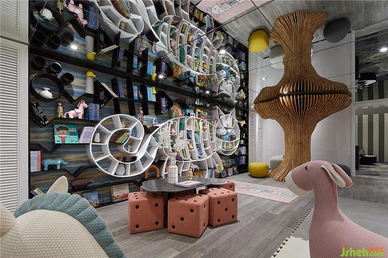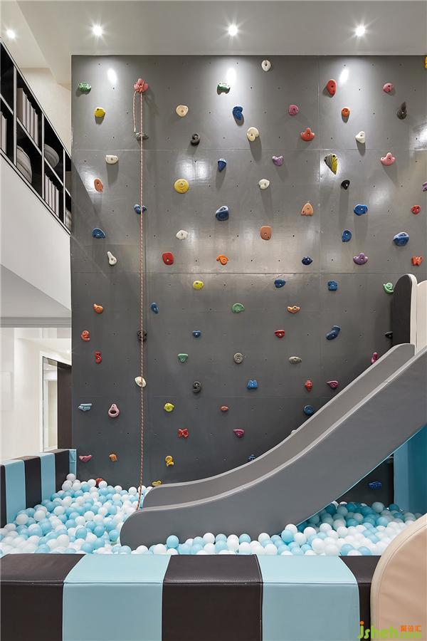 兒童娛樂區(qū)提供兒童活動的空間,攀巖墻、藍(lán)白色泡泡球、滑梯創(chuàng)造了豐富多彩的游戲方式,樣板房設(shè)計以“玩”為天性的活動,讓孩子們可以追隨自己自由的心靈。