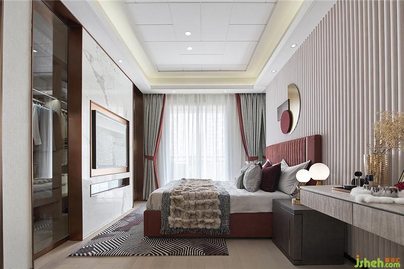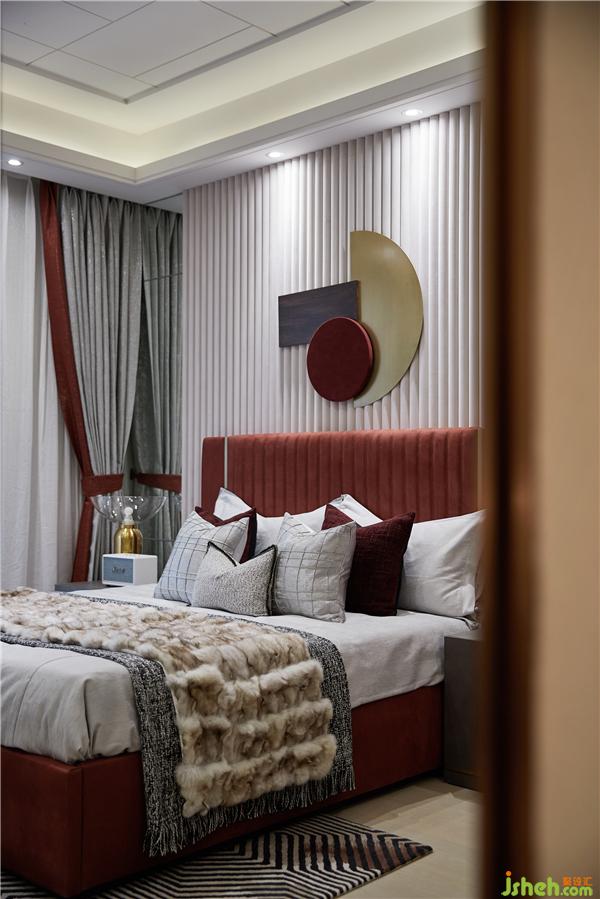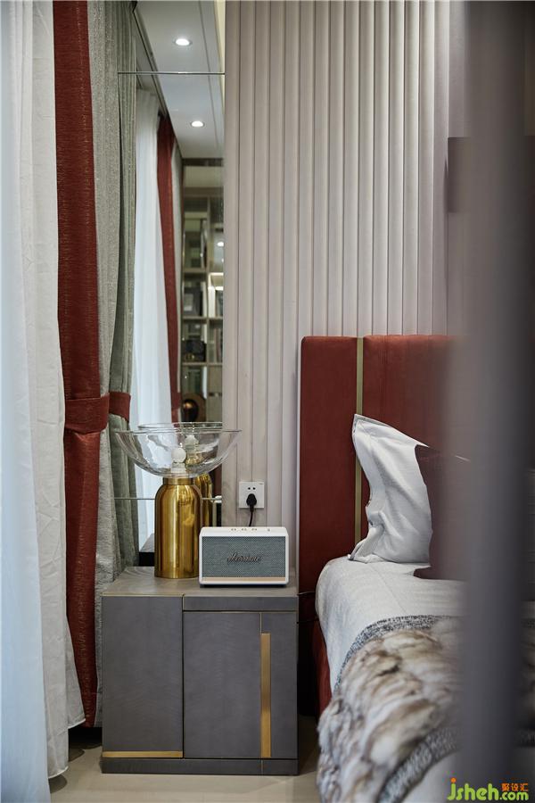現(xiàn)代時尚的氣息充斥于臥室空間,任何角度都有賞心悅目的視覺變化,豐富而不凌亂,任其飄散在居所的每一個角落,游離其中,讓每一道棱角、每一道光線都衍生出一種高雅的美,安穩(wěn)不乏遐想,靜謐不乏靈動。