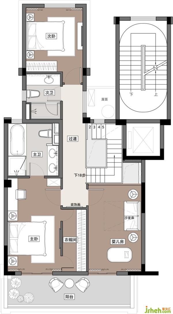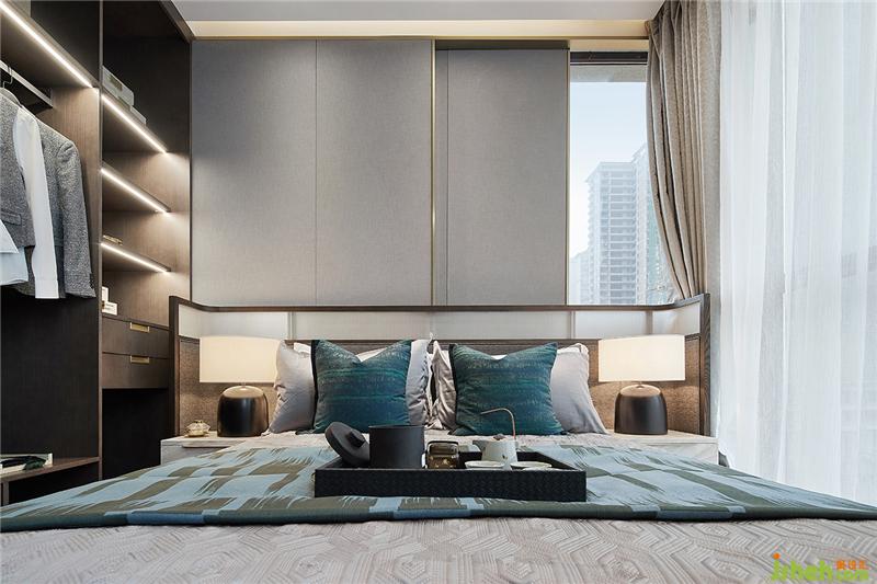空間的美不一定是更多的商業(yè)裝飾。保留建筑本身的特性,在三面環(huán)繞窗戶的空間里,可開(kāi)可合的床背景保證了空間的完整性,亦可釋放空間的美。樣板房設(shè)計(jì)