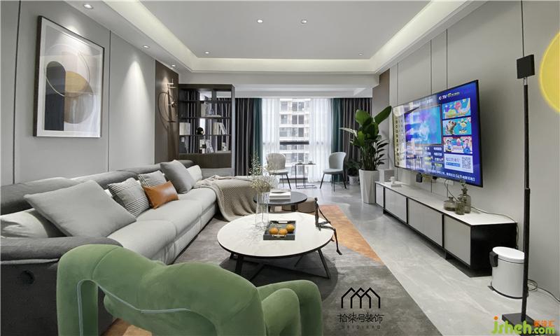 墻面使用了偏暖色木紋的木飾面加上不缺現(xiàn)代的奶茶灰進(jìn)行搭配,客餐廳無(wú)主燈設(shè)計(jì),顯得空間更加溫柔,光線照射到軟裝上,不張揚(yáng)也不俗氣??蛷d打通至陽(yáng)臺(tái),柳州家居設(shè)計(jì)做了一組隔斷柜,作為日常雜物收納實(shí)用性滿(mǎn)滿(mǎn)。
