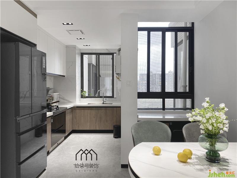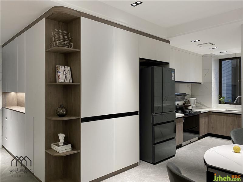 進(jìn)門(mén)一直延伸到廚房做一整組的鞋柜+酒柜,滿(mǎn)足家里所需的收納空間,我家廚房不僅要好看還要好用。