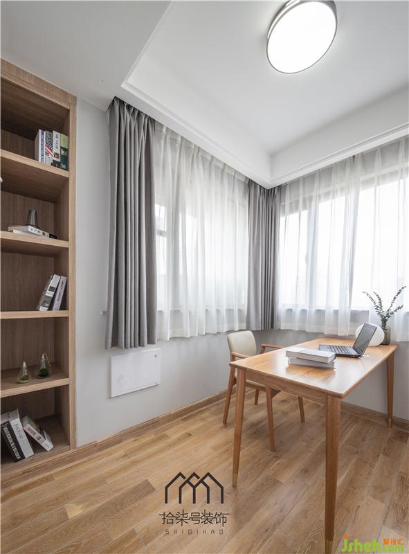 書(shū)房裝修設(shè)計(jì),紋理自然,原木柜體,承襲一貫風(fēng)格