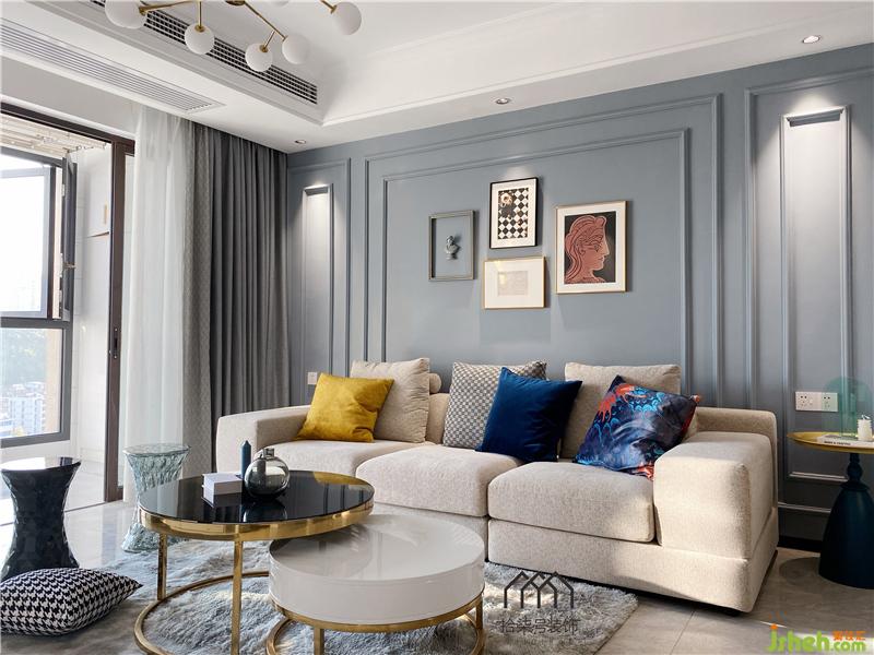 柳州家居裝修空間的色調(diào)是小清新的霧面藍(lán)搭配素雅的大理石白,柔軟的布藝沙發(fā)讓人一看就想在上面躺一躺。