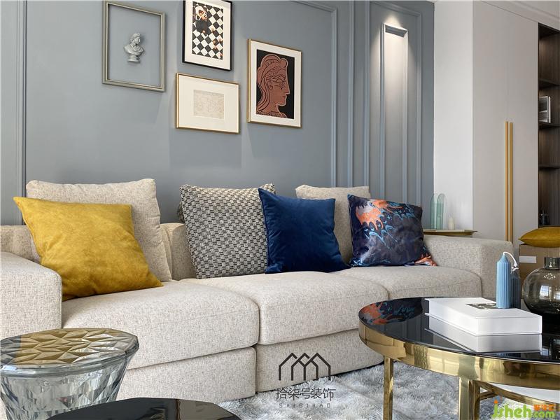 柔軟的抱枕,矢車菊藍(lán)的空間點(diǎn)綴。極具藝術(shù)氛圍的組合裝飾畫增加空間藝術(shù)內(nèi)涵。