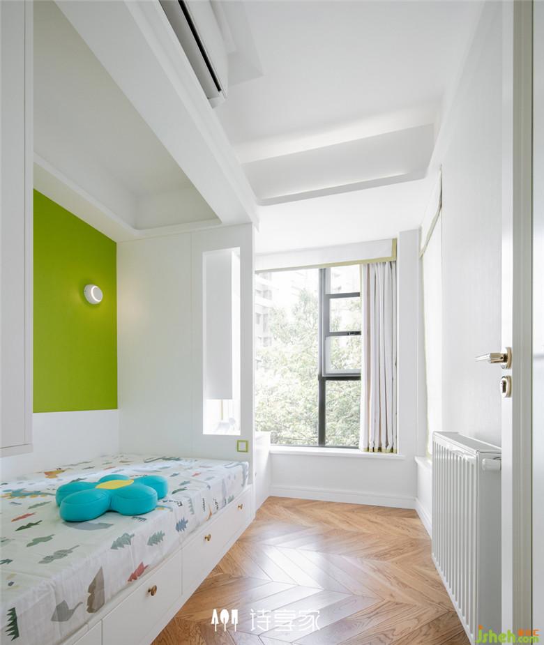 挨著主臥的小孩兒房,采用了榻榻米的設(shè)計(jì),這種方式可以節(jié)省空間,把活動空間盡量留大,讓小孩子有更多的空間玩耍和做自己喜歡的事兒,并且設(shè)計(jì)書桌和書柜的位置,滿足學(xué)習(xí)的功能。