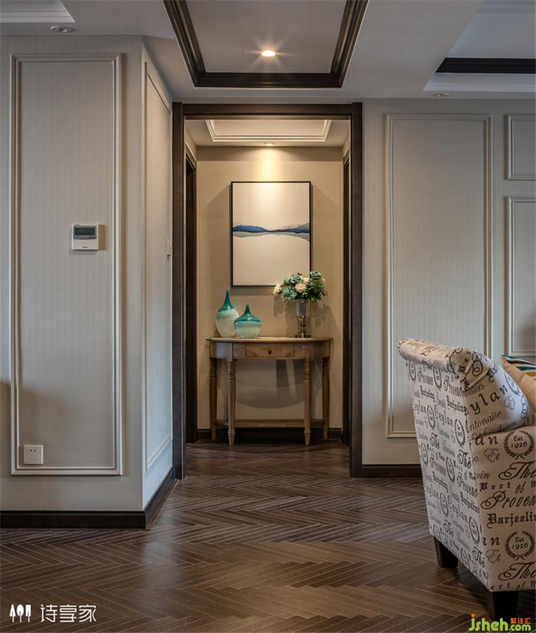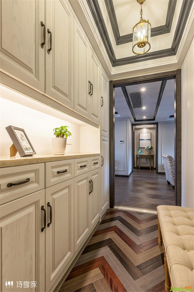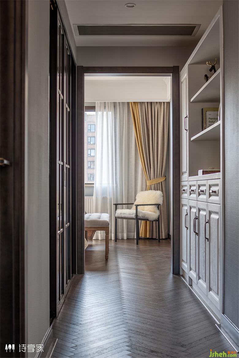 室內(nèi)設(shè)計師在平面布局上把原本的走廊分化成幾個區(qū)域,讓客餐廳成為一個整體,隔出門廳跟玄關(guān)。犧牲部分客臥作為通向主臥套房的過道,利用原本部分走廊隔出一塊雖然不大但非常實用的儲物間。
