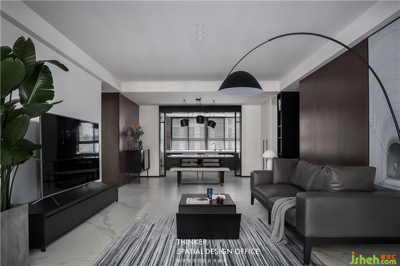 這個家?guī)缀踔挥泻?、白、灰與棕,每個角落都彌漫著硬朗的男性特質。