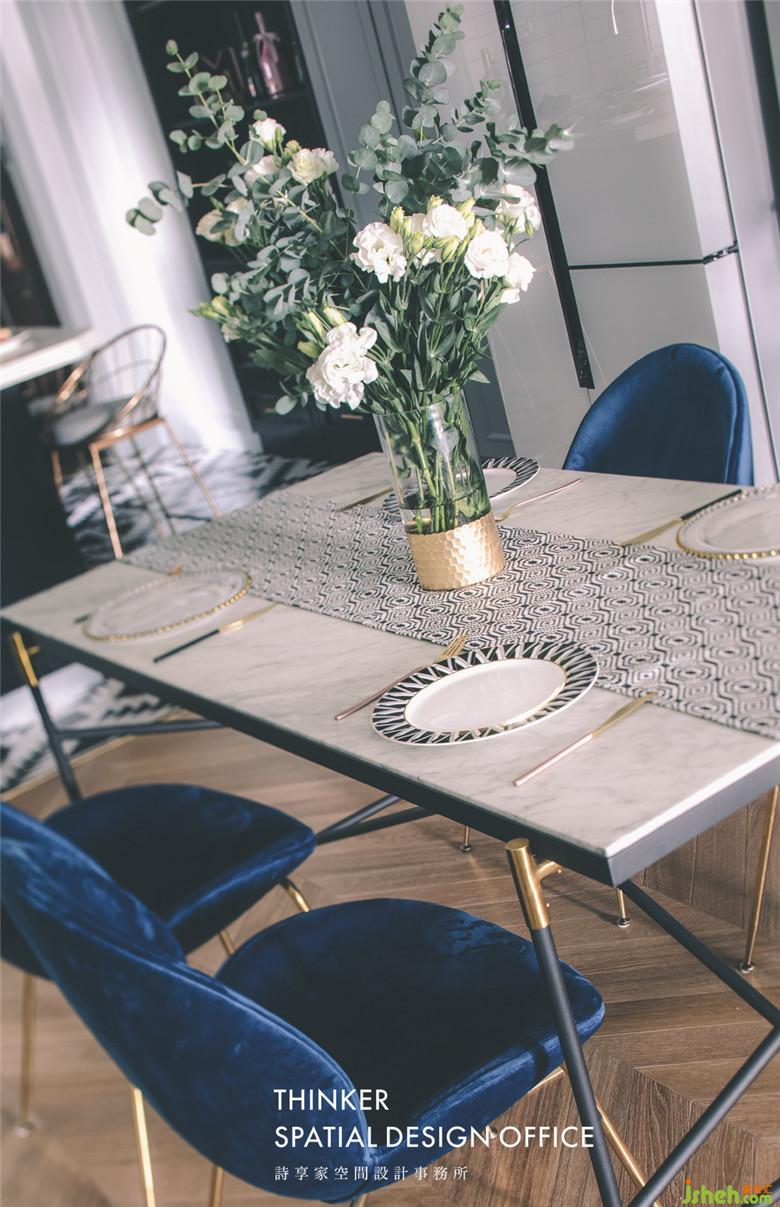 大理石餐桌搭配絲絨餐椅,復(fù)古與現(xiàn)代,硬朗與柔軟,室內(nèi)設(shè)計師讓整個空間既有法式的優(yōu)雅,也有當(dāng)代的舒展與利落。