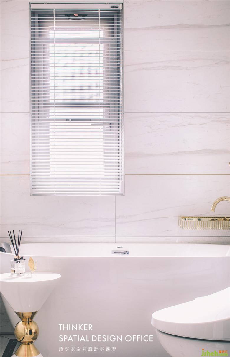包含在臥室套房中的浴室,是女主人放松的獨(dú)立區(qū)域,浴缸,香熏,金色配飾,氤氳出一室閑逸,愛自己的女人,會(huì)給自己一個(gè)治愈空間。