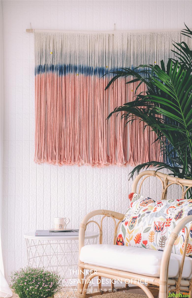 坐享一線江景的陽(yáng)臺(tái),大大的落地窗引入陽(yáng)光,藤編椅,碎花枕,散尾葵,讓這個(gè)集閱讀、種植、觀景于一體的空間生機(jī)盎然,生活的豐富與生動(dòng),往往就在家的每個(gè)小小角落里。