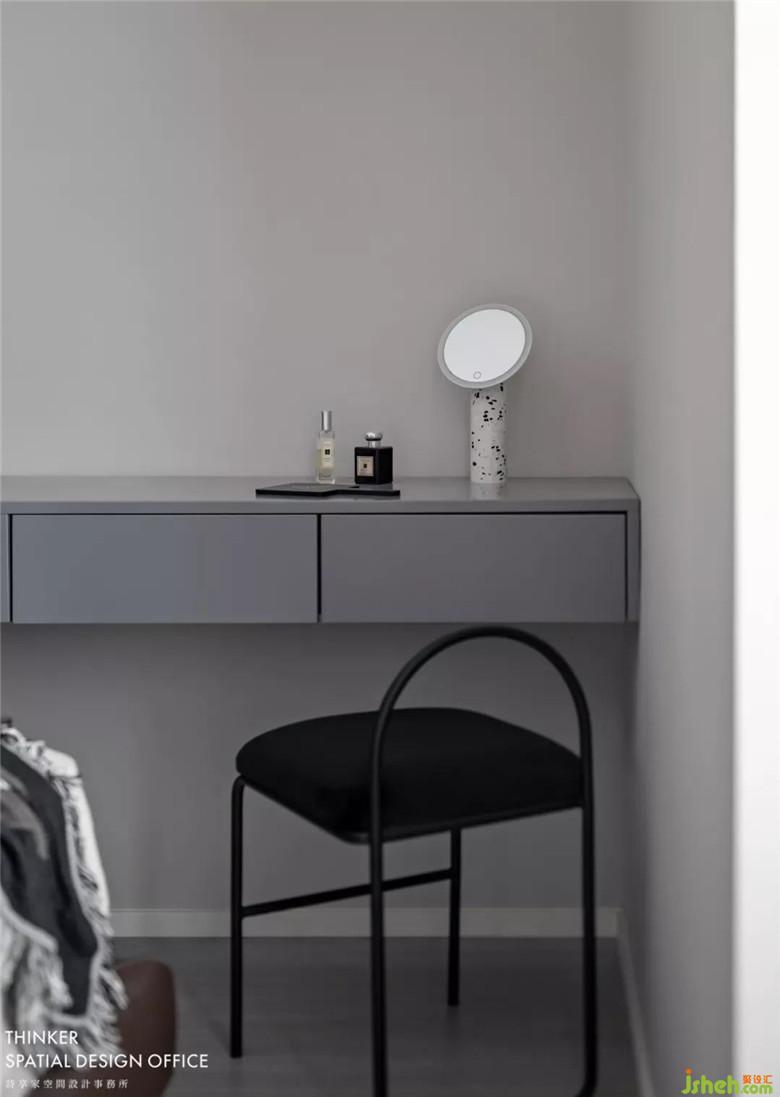 懸空的梳妝臺視覺上更輕盈,同時(shí)也便于清潔衛(wèi)生死角。
