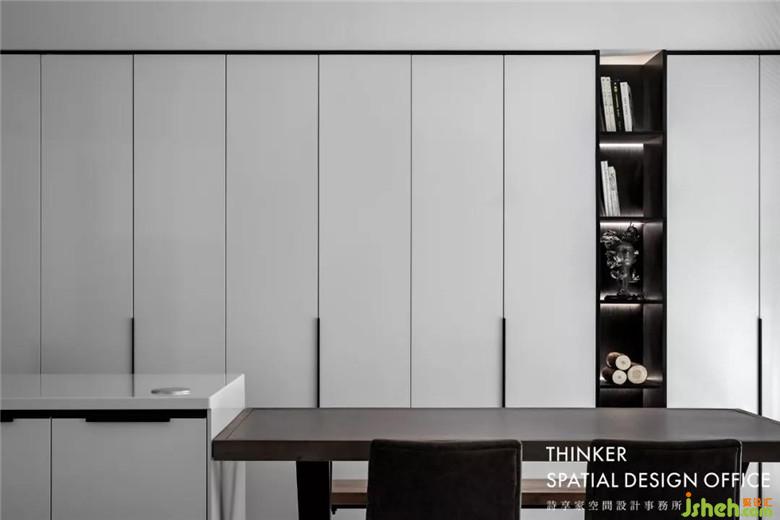 餐桌+島臺(tái)的流暢動(dòng)線,帶來(lái)寬敞舒適的空間感受,聚餐、party、西點(diǎn)、品酒,全都能hold住。