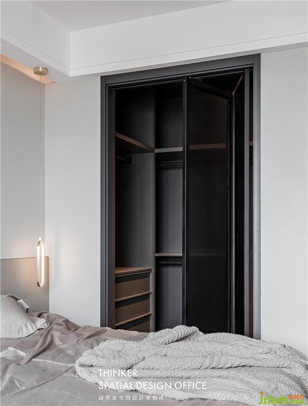 · 借用臥室部分空間做出一個衣帽間,套房式設(shè)計讓生活更舒適。衣帽間門選用長虹玻璃,做折疊設(shè)計,方便日常衣物的拿放。