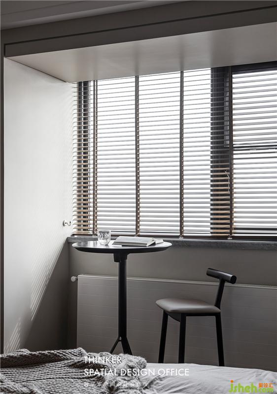 · 定制高低床組合衣帽間,滿足了兩個孩子同處一間的休息及收納需求,靠陽臺墻布置床具,用設(shè)計把空間的不足變成裝修亮點;